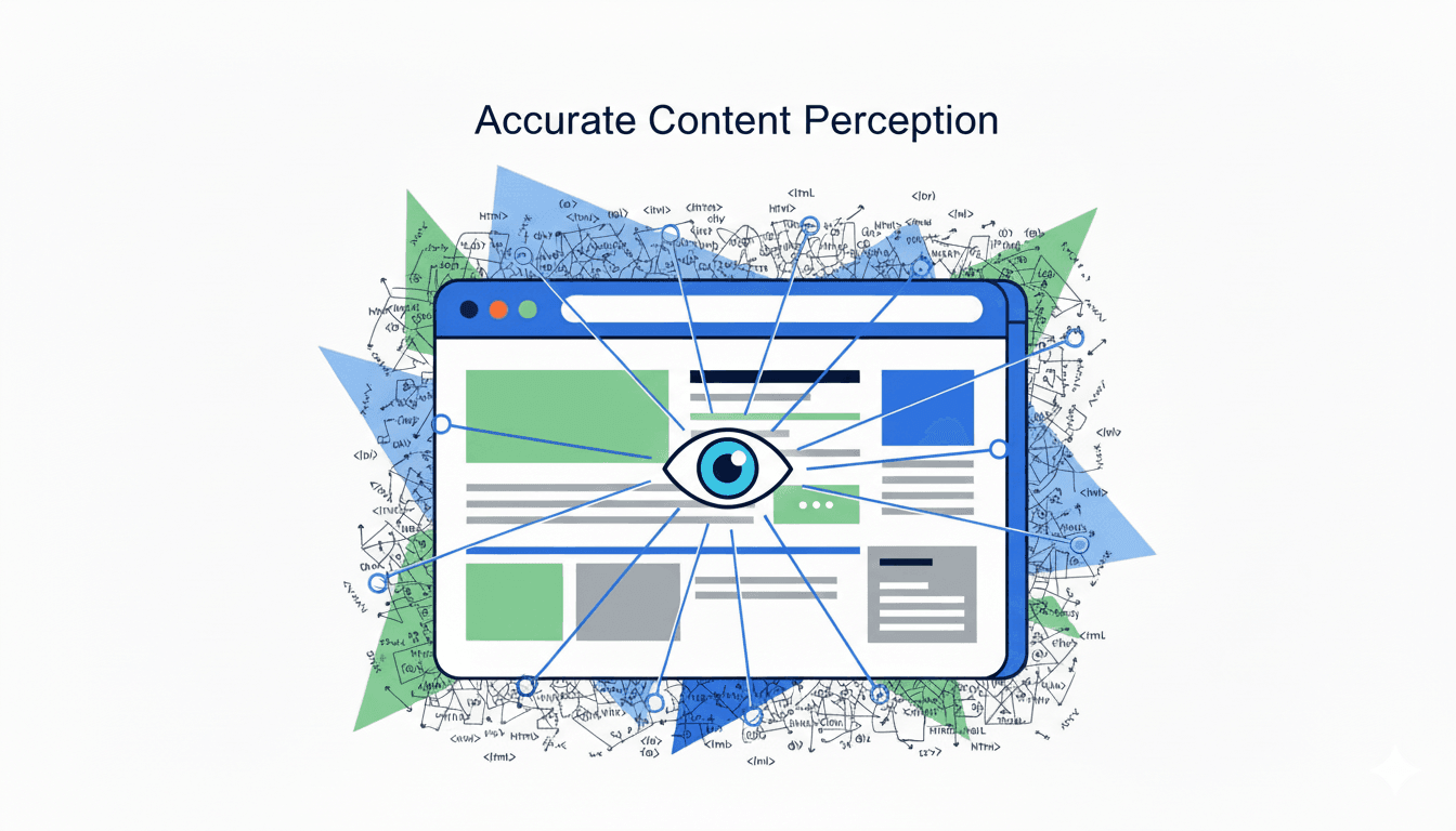 - Accurate Perception: The platform provides tools that process the raw DOM into a clean, structured format optimized for an AI, solving the problem of information overload and lack of visual context.